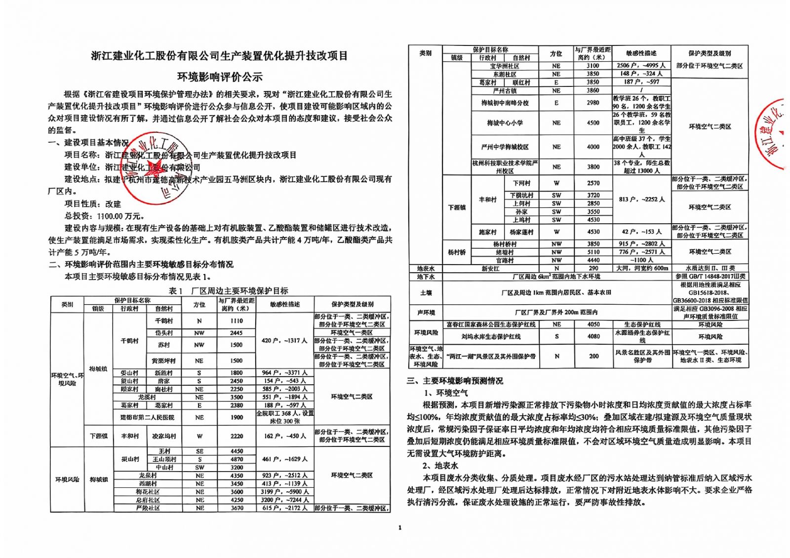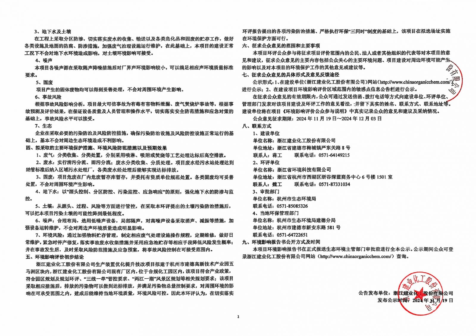 生产装置优化提升技改项目环境影响评价公示